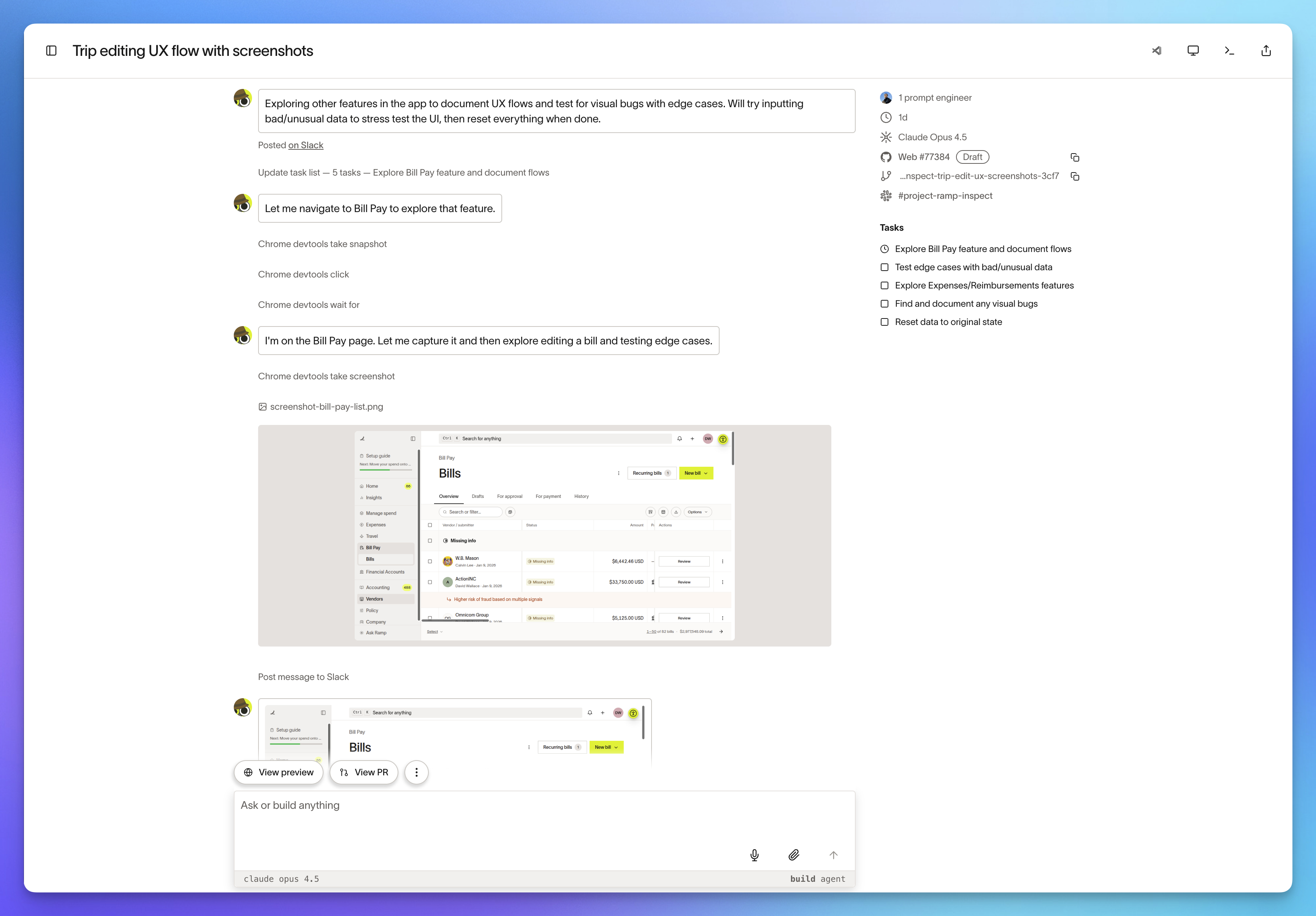 I would love to be able to start an agent on a random idea through Slack right when I have the idea. Otherwise, the clarity of the idea might be gone by the time I get back to my desk.
